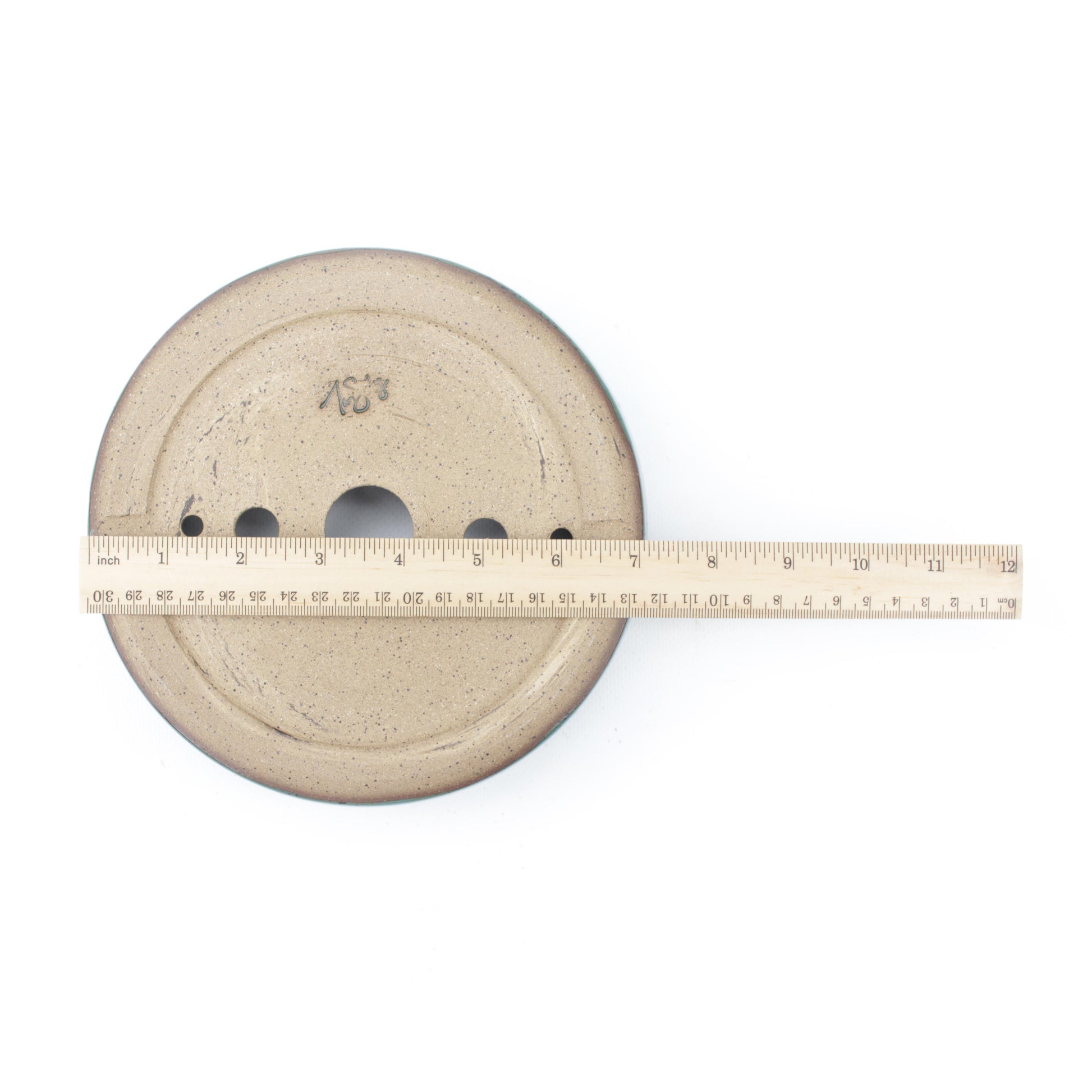 7.5" Teal Speckled Stoneware Round Bonsai Pot