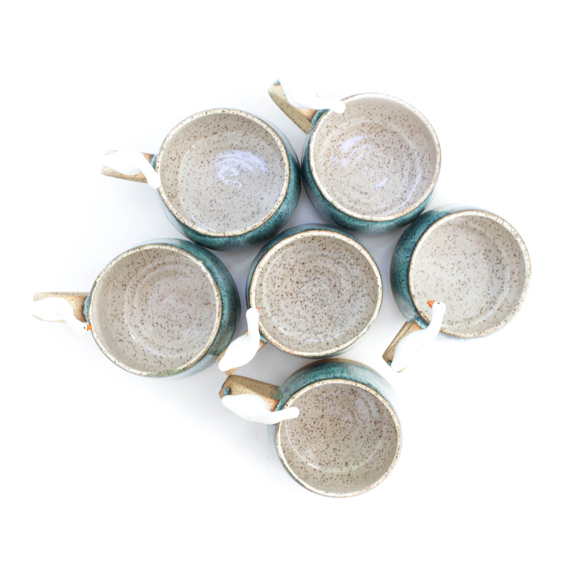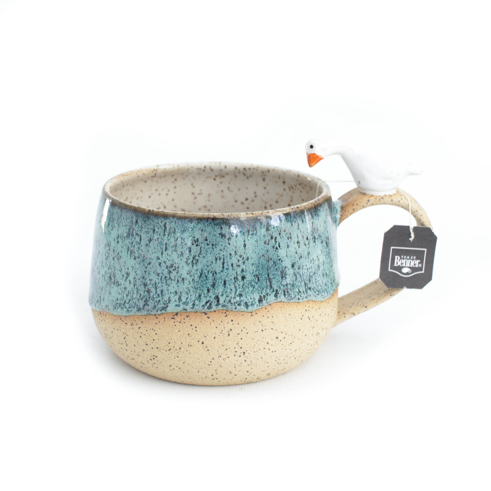 Silly goose sculpture wheel thrown speckled stoneware ceramic mug for tea. The goose pal on your mug can be used to wrap the string of your tea bag around like a cute little scarf. Each mug is a unique handmade individual. The perfect gift for the tea loving silly goose in your life. Wheel thrown stoneware ceramic pottery. A great mug for tea, coffee, or your favorite beverage. Comfortable mug with generous portions for getting the best start to your daily routine. Unique pottery gifts for husband or wife anniversary, holiday or just because. A handmade mug for coffee, tea or your favorite beverage handcrafted with love in my small batch Texas home studio.