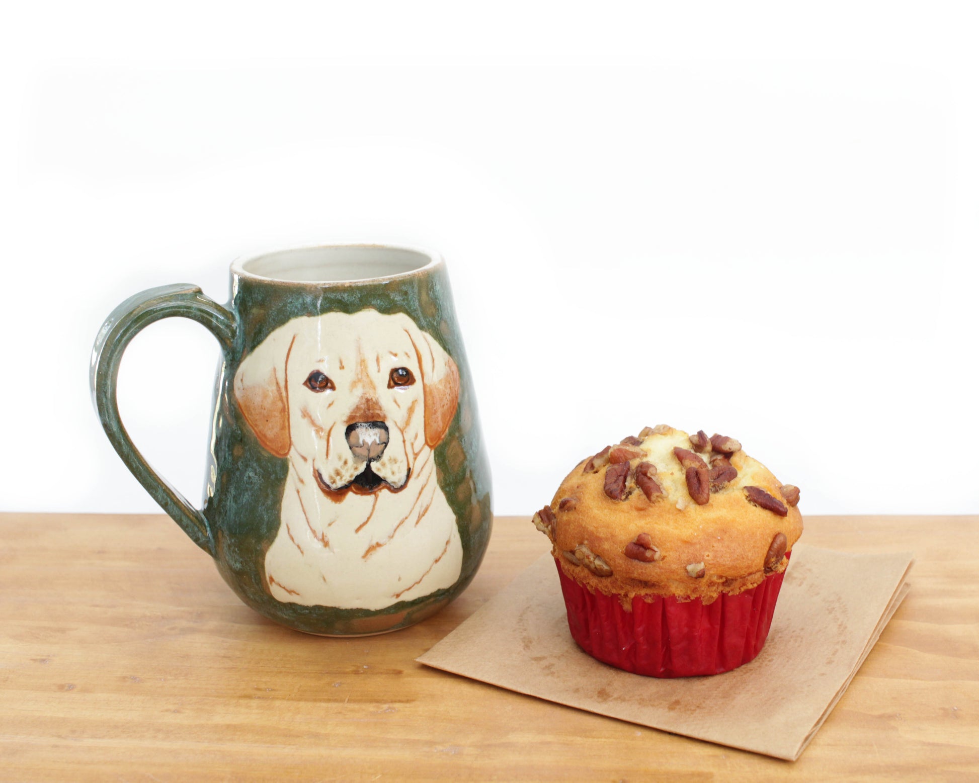 Hand painted Labrador retriever coffee mug. Wheel thrown stoneware ceramic pottery. A great mug for tea, coffee, or your favorite beverage. Comfortable mug with generous portions for getting the best start to your daily routine. Unique pottery gifts for dog lovers, lab parents, husband or wife anniversary, Christmas, birthday, holiday or just because. A handmade mug for coffee, tea or your favorite beverage handcrafted with love in my small batch Texas home studio.