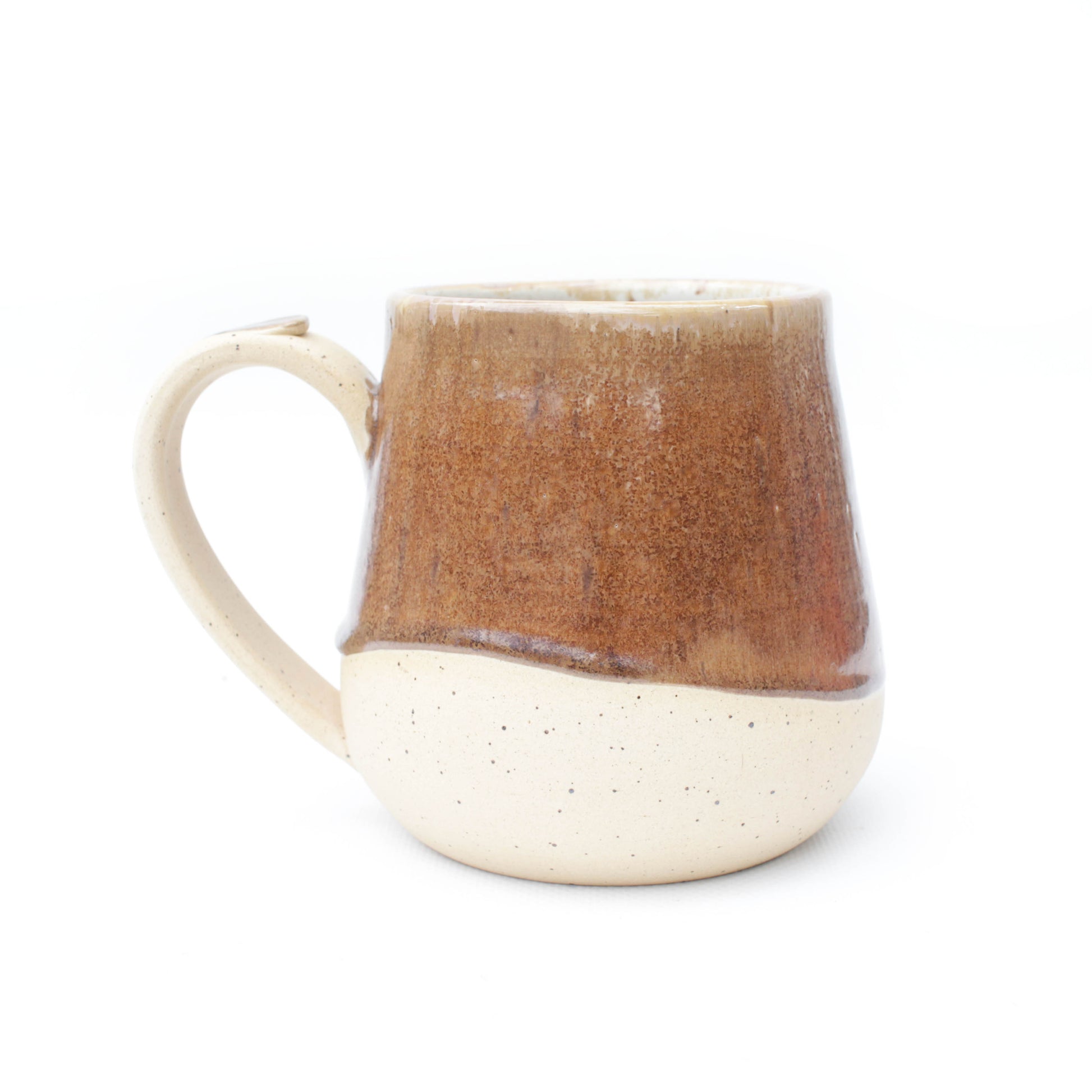 Warm brown crystalline glazed wheel thrown large ceramic mug with handle. Small batch, artisan studio pottery handmade in my small batch Texas home studio. The perfect handmade gift for coffee lovers, birthday gifts, housewarming presents, holiday gifting, valentine's day, mother's day, father's day, or any special occasion.